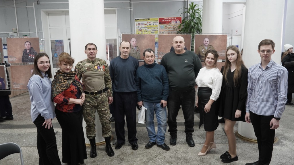 В фойе собрались представители молодёжи – «Волонтёрская рота», ученики Усть-Абаканской, Чапаевской и Калининской школ, студенты, а также участники локальных войн, ветераны боевых действий, районное «Боевое братство» (Сергей Журавлёв, Николай Кадычеков, Андрей Гончарук) и боец специальной военной операции Анатолий Остапенко из рп. Усть-Абакана.