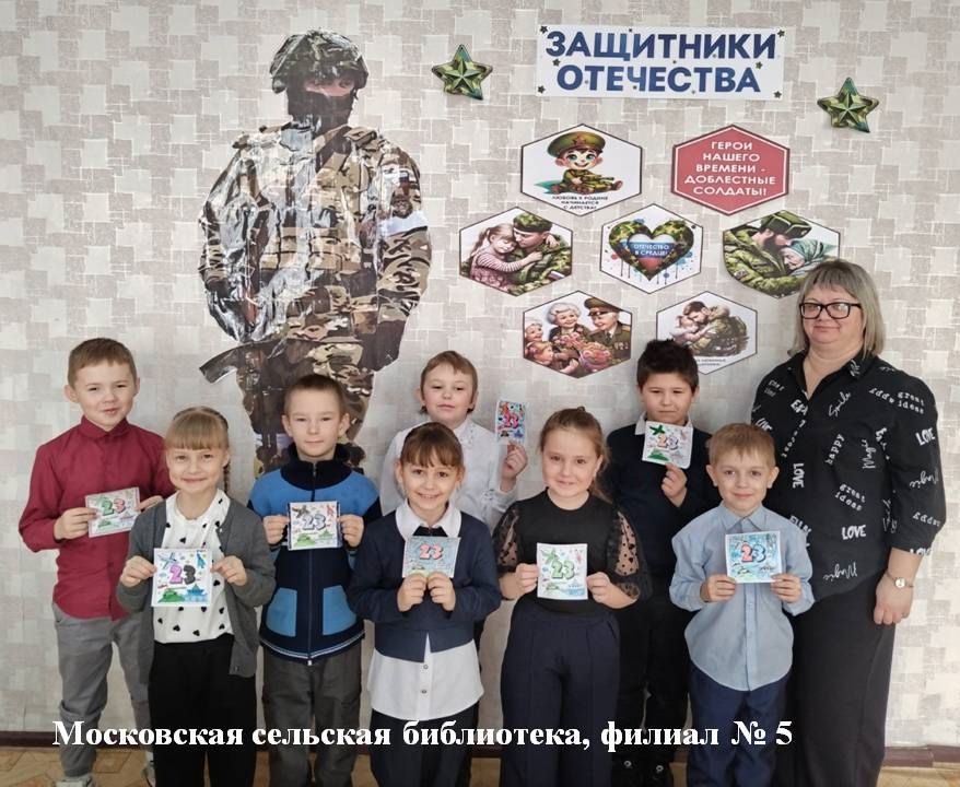 В Сапоговском сельском Доме культуры для учащихся школы заведующая Сапоговской сельской библиотекой (филиал № 13) провела исторический час «Будем Родине служить!» В завершении ребятам от девочек - одноклассниц были подарены открытки, сделанные своими руками. Также к мероприятию была оформлена книжная выставка «Стоит на страже Родины солдат».