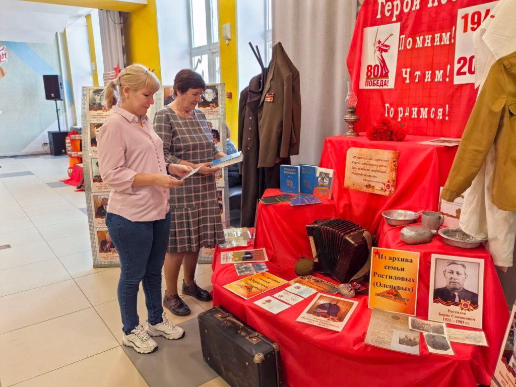 Гостеприимный холл ДК «Дружба» встретил гостей районной выставкой «Нам жить и помнить», посвящённой 80-летней годовщине Великой Победы.