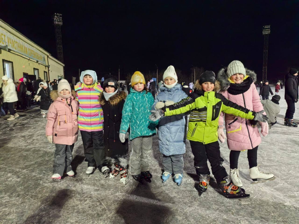 Несмотря на лёгкий морозец, атмосфера на катке была по-домашнему уютной и радостной. Дети смеялись, учились держать равновесие на коньках, пары в ритме скользили под музыку, а компании друзей затевали дружеские эстафеты – лёд объединил всех!