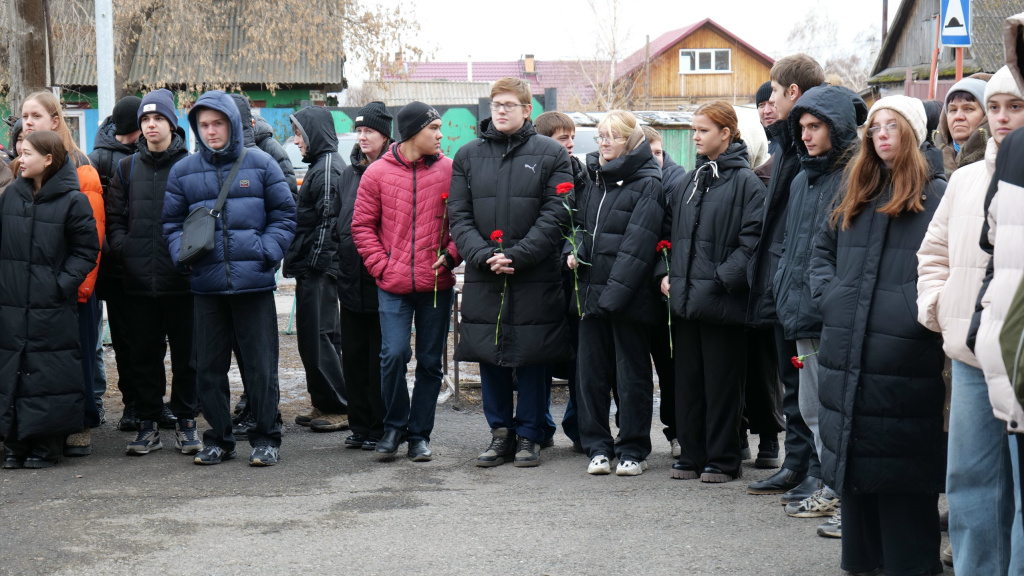 Под звук метронома в минуту молчания будто замерло время: школьники склонили головы, учителя едва сдерживали слёзы, родные держали друг друга за руки. На лицах читалась одна общая скорбь, боль утраты, но в то же время гордости за героя и благодарности за его подвиг.