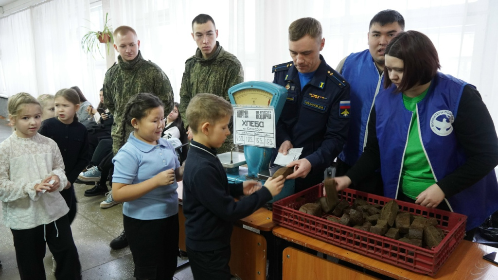 В этот день – День воинской славы России, посвящённый 82-летию снятия блокады Ленинграда, юные граждане района получили по 125-граммовому символическому кусочку хлеба, завёрнутому в пергамент. Всего Молодёжным ресурсным центром было закуплено и нарезано 96 булок хлеба «Бородинский», каждая весом по 300 граммов. И 49 булок такого же хлеба, каждая весом 600 граммов, закупили, нарезали и раздали сотрудники Усть-Абаканского районного историко-краеведческого музея.