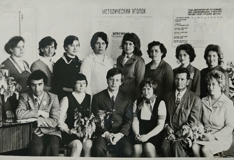 Учителя русского языка и литературы Любовь Фёдоровна Калениченко и Тамара Николаевна Петрова – наставники многих учителей, пришедших работать в нашу школу, выучили не одно поколение расцветской детворы. Уроки математики вели Валентина Александровна Смирнова и Татьяна Ивановна Максина. Немецкому языку обучала Александра Максимовна Третьякова, проработавшая в школе 49 лет. Она награждена нагрудным знаком «Почётный работник общего образования Российской Федерации». Географию в течение 40 лет преподавала Галина Николаевна Мосман, «Почётный работник общего образования Российской Федерации». Трудовое обучение и черчение вёл Александр Арсентьевич Калениченко, а военное дело – Дмитрий Зиновьевич Василенко. Уроки физкультуры вёл более 40 лет Владимир Александрович Патрушев, награждённый грамотой Министерства образования и науки Российской Федерации. Физику преподавала Ванда Ивановна Еремеева.