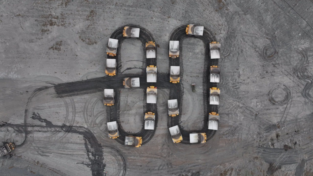 Угольщики компании «СУЭК-Хакасия» в честь юбилея Победы устроили необычный флешмоб. Огромную цифру 80 они выстроили из автосамосвалов. А центральное место занял ретро-автомобиль «Катюша». Карьерные автосамосвалы выстроились в огромную цифру прямо на угольном разрезе.