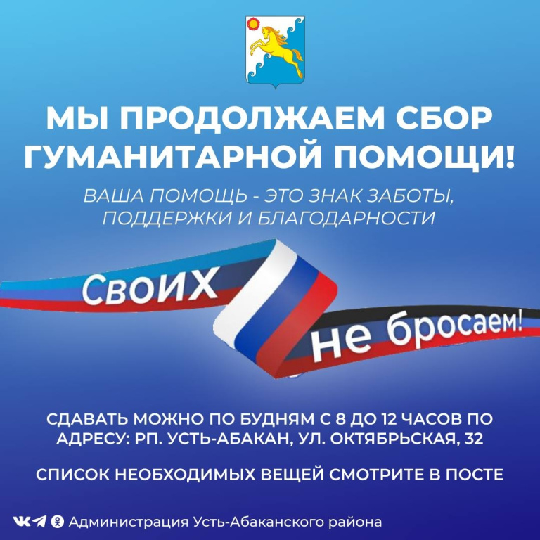 Мы призываем жителей Усть-Абаканского муниципального района проявить доброту и отзывчивость: соберите постельное бельё – новое или бывшее в употреблении (обязательно чистое) – и передайте его на нужды фронта и госпиталей!