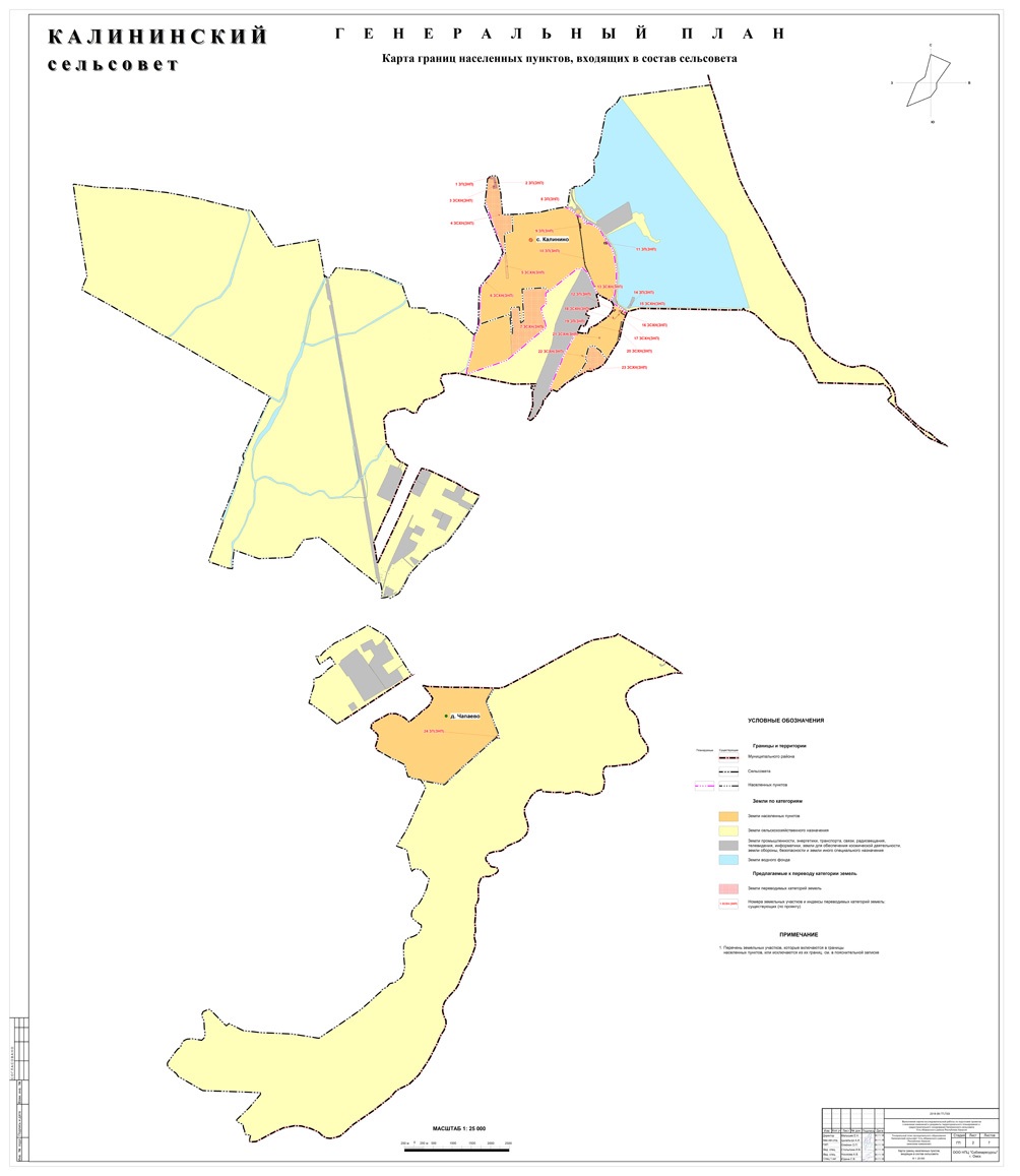 Проект о внесении изменений в Генеральный план и Правила землепользования и застройки Калининского сельсовета Усть-Абаканского района был разработан ООО НПЦ «Сибземресурсы» (г. Омск) на основании муниципального контракта от 19.09.2019 № 52, в соответствии с постановлением администрации Усть-Абаканского района от 23.05.2018 № 611-п «О подготовке проектов о внесении изменений в Генеральный план и Правила землепользования и застройки Калининского сельсовета Усть-Абаканского района Республики Хакасия».
