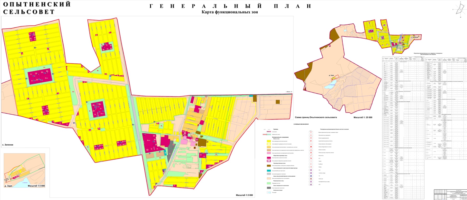 Карта функциональных зон генерального плана Опытненского сельсовета Усть-Абаканского района