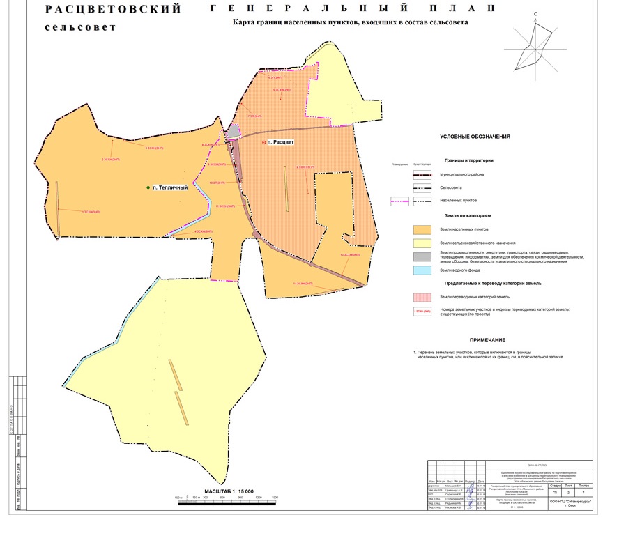 Проект о внесении изменений в Генеральный план и Правила землепользования и застройки Расцветовского сельсовета Усть-Абаканского района был разработан ООО НПЦ «Сибземресурсы» (г. Омск) на основании муниципального контракта от 19.09.2019 № 51, в соответствии с постановлением администрации Усть-Абаканского района от 09.08.2018 № 1006-п «О подготовке проектов о внесении изменений в Генеральный план и Правила землепользования и застройки Расцветовского сельсовета Усть-Абаканского района Республики Хакасия».