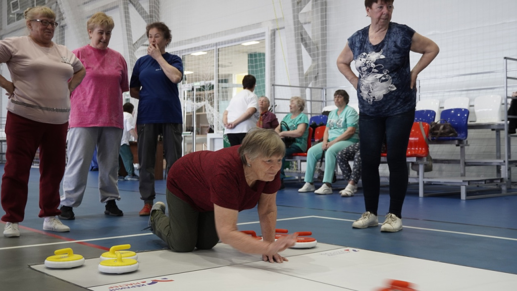 Универсальный спортивный зал гостеприимно встречал гостей. Здесь прошёл турнир по кёрлингу среди лиц с ограниченными возможностями здоровья и граждан старшего поколения, посвящённый Победе советского народа в Великой Отечественной войне.