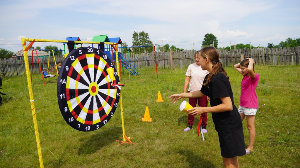Детвора радостно играла в кольцеброс, «ловила рыбу», а также проверяла меткость в дартсе. Ребята с радостью участвовали во всех испытаниях, а за свои старания и достижения получали сладкие призы.