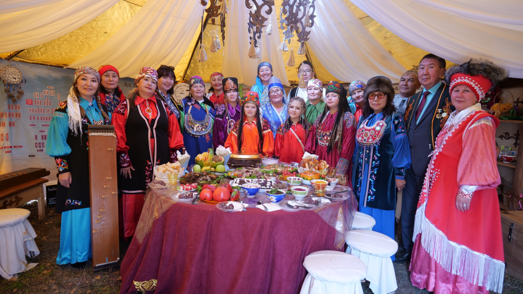 Отдельного внимания заслуживала презентация рода. Честь района представлял древний род Доможаковых из одноименного села. Семья украсила юрту в национальном стиле, разместив на полочках семейные реликвии, предметы быта, стены украсила схема родового древа – размеры его впечатляли! Приятным сюрпризом для гостей стала игра на чатхане.