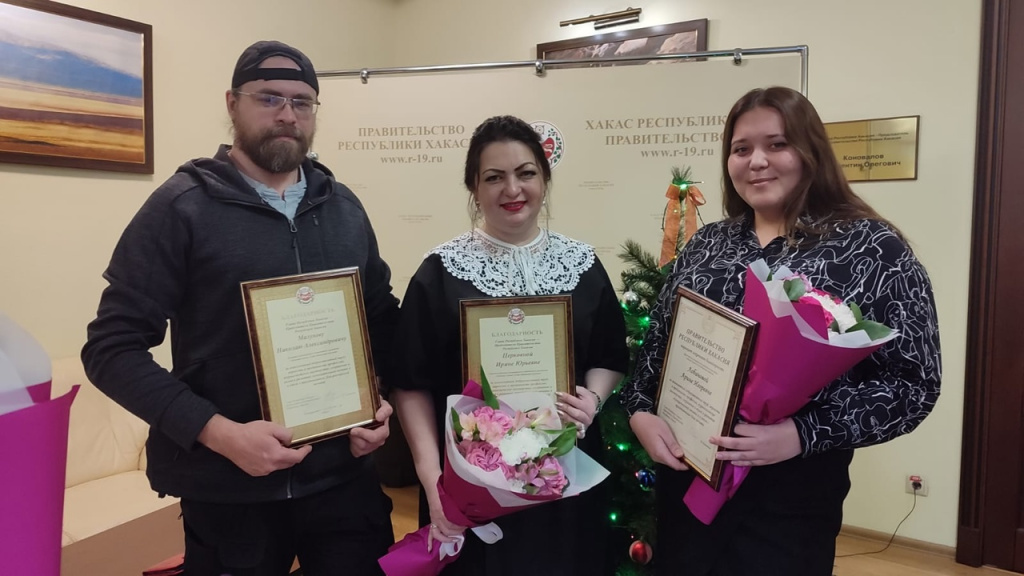 Также в этот день состоялось награждение журналистов в Правительстве Республики. Благодарность Главы Республики Хакасия получили главный редактор «Усть-Абаканских известий» Ирина Церковная и дизайнер Николай Малунов. Благодарственное письмо вручили Арине Лобановой.