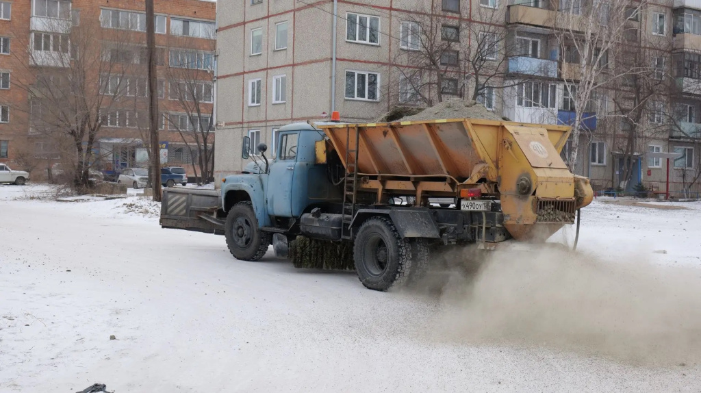 В ходе осмотра проведена рабочая встреча с представителями подрядной организации. Непосредственно на месте Елена Владимировна и Татьяна Викторовна указали представителям подрядчика проблемные скользкие участки, требующие отсыпки. И пока шло обсуждение организационных вопросов, спецтехника выполняла работы на проезжей части и перекрёстках.