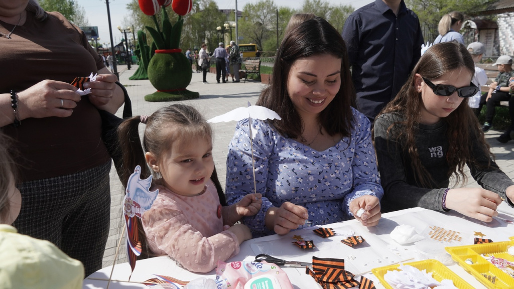 Танки, самолёты, военные корабли… – Усть-Абаканская школа представила на выставке макеты военной техники. Каждый экспонат можно было потрогать, детально рассмотреть. Участие в празднике принимали даже самые маленькие жители района! На мастер-классах, подготовленных работниками Управлений образования и культуры, правнуки и праправнуки Победителей раскрашивали памятные значки, магниты, звёзды, научились делать из бумаги голубя Мира – символ Победы.