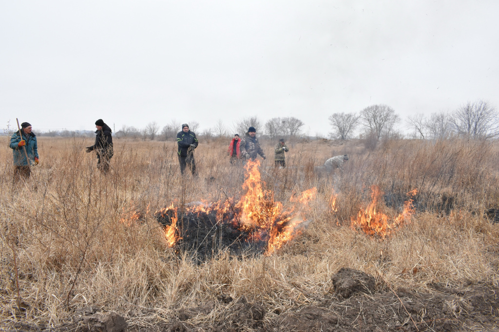 Вооружившись необходимым инвентарём – мётлами, воздуходувками, лопатами, а также «факелами» и ограничителями пламени, сделанными из подручных материалов, – представители власти вместе с жителями улицы Озёрной провели контролируемый отжиг сухой растительности. В мероприятии приняла участие Глава района Елена Егорова.