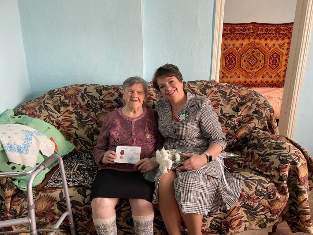 Председатель Совета депутатов Усть-Абаканского района Республики Хакасия Елена Баравлёва вручила памятные медали 80-летия Победы в Великой Отечественной войне нашим дорогим труженикам тыла из села Московское.