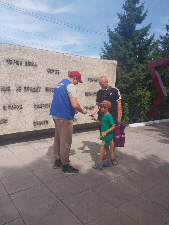 Пообщаться на улицах райцентра удалось как со взрослыми жителями, так и с детьми. После беседы участникам раздали брошюры с краткой информацией о сражении.