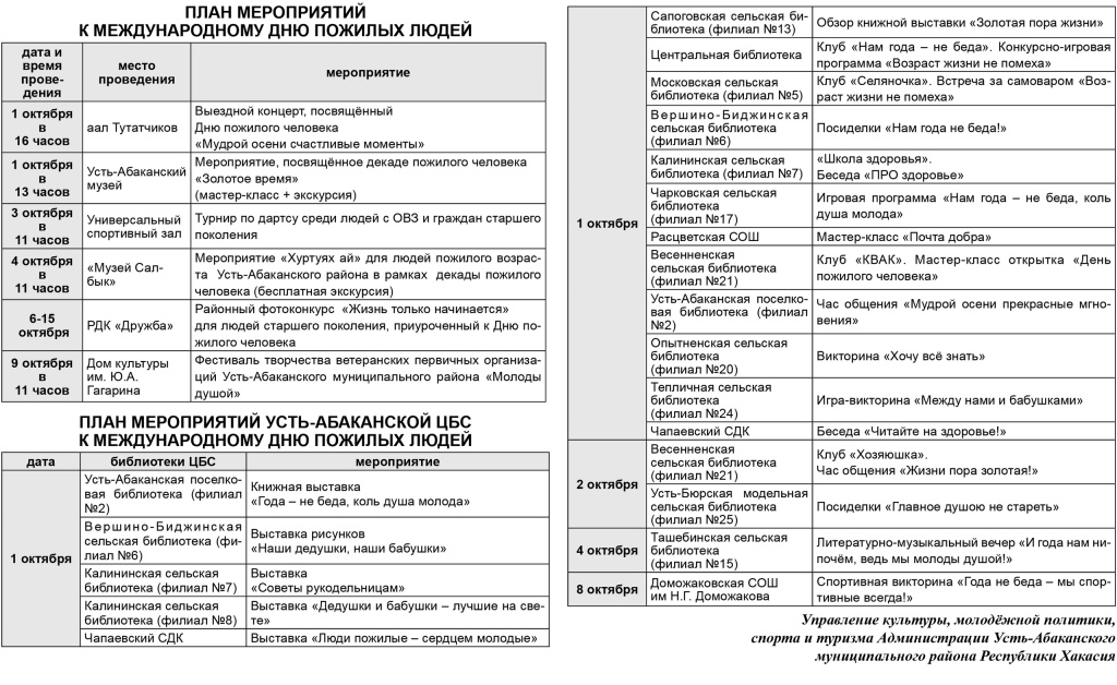 План мероприятий Усть-Абаканской ЦБС