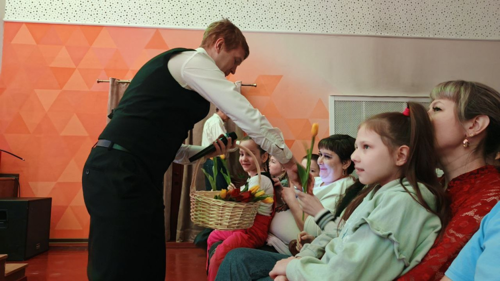 Зрителей ждала насыщенная программа с яркими концертными номерами, аплодисменты не стихали. Особым знаком внимания для всех женщин стали подаренные тюльпаны – этот трогательный жест сделал день ещё более уютным и тёп-лым, наполнив сердца гостей весенним настроением.