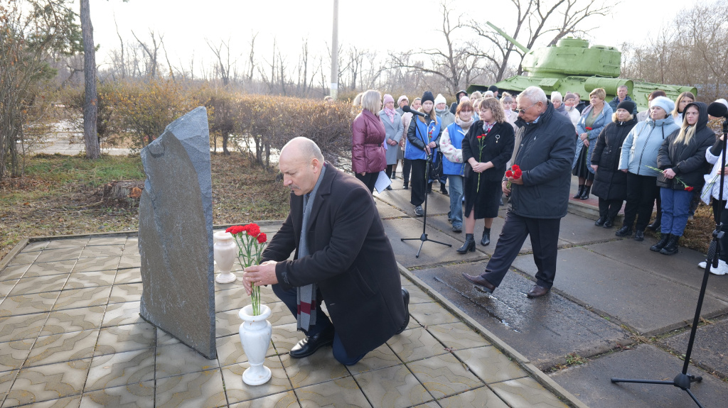 У закладного камня на мемориале «Вечная Слава» собрались жители, школьники, представители учреждений, «Волонтёры Победы», чтобы принять участие в традиционном митинге, посвящённом Дню памяти жертв политических репрессий.