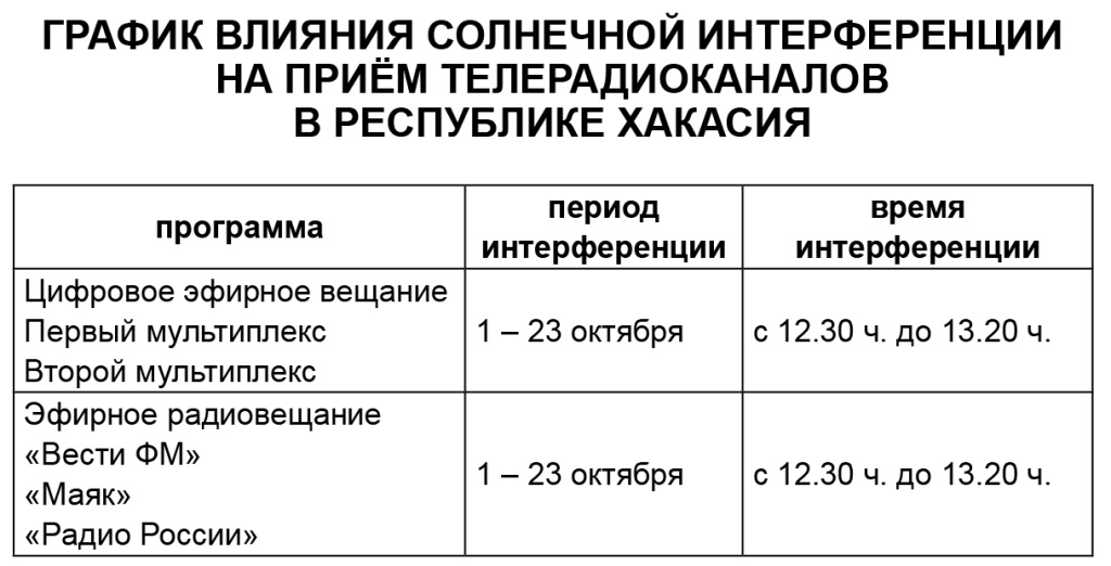 В Республике Хакасия выход Солнца на одну ось со спутником связи и наземным ретранслятором возможен с 01.10.20025 г. до 23.10.2025 г. Продолжительность помех – от нескольких секунд до пяти минут в сутки.