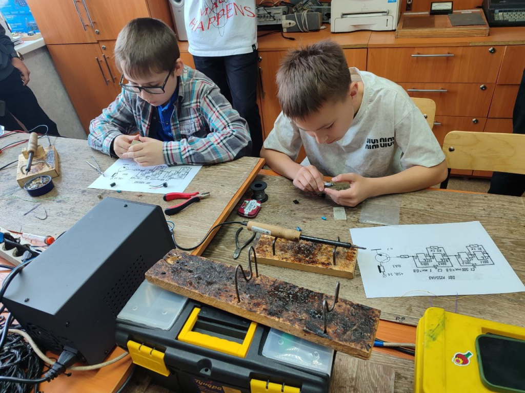 Ребята выполнили практическую работу – собрали схему предложенного радионабора на печатной плате. Каждый из участников показал высокий уровень подготовки, знаний и умений в радиотехнике.